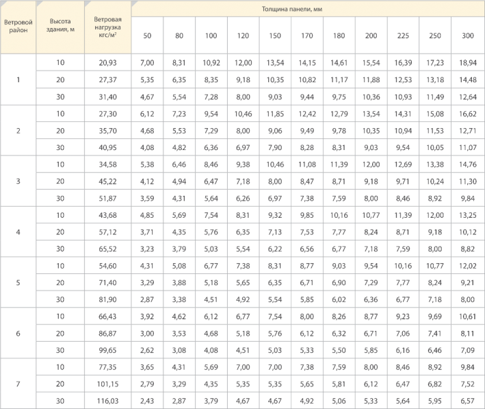 8.7.2 Максимальный пролет крепления стеновых панелей для местности типа С